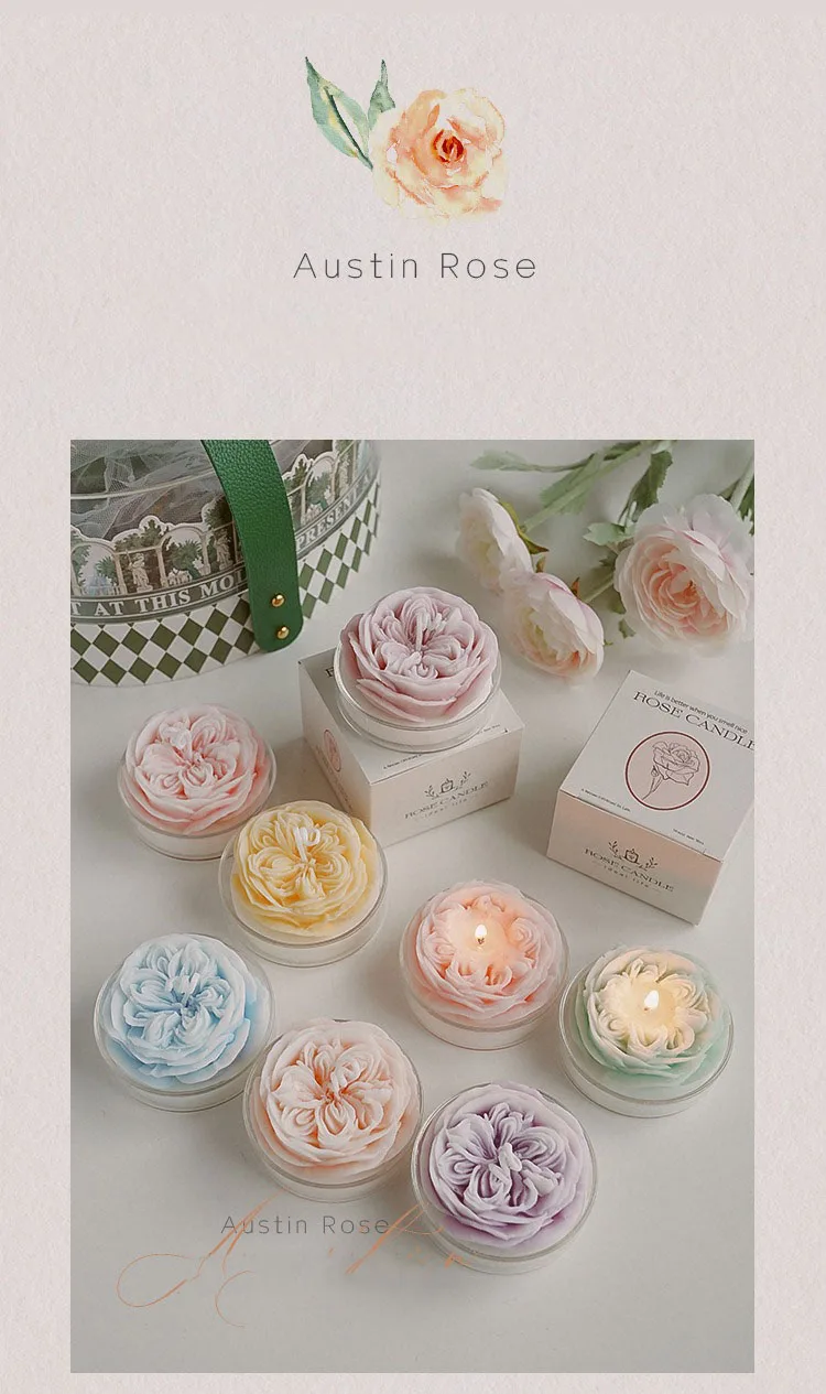 Austin Rose Scented Flower Candles – Romantic Gift for Valentine & Birthday