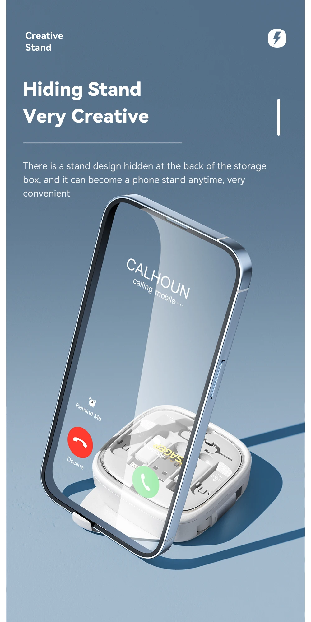 • Multi-Functional Design – This isn’t just a cable; it’s a versatile tool. Comes with a storage box and phone stand, making it an ideal travel and organization solution.
