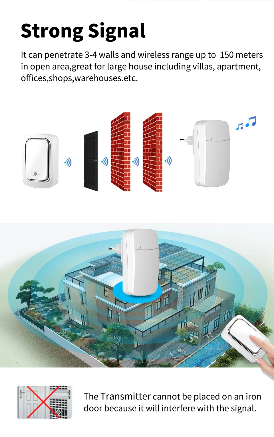 It can penetrate 3-4 walls and wireless range up to 150 meters in open area,great for large house including willas, apartment,offices,shops,warehouses.etc.