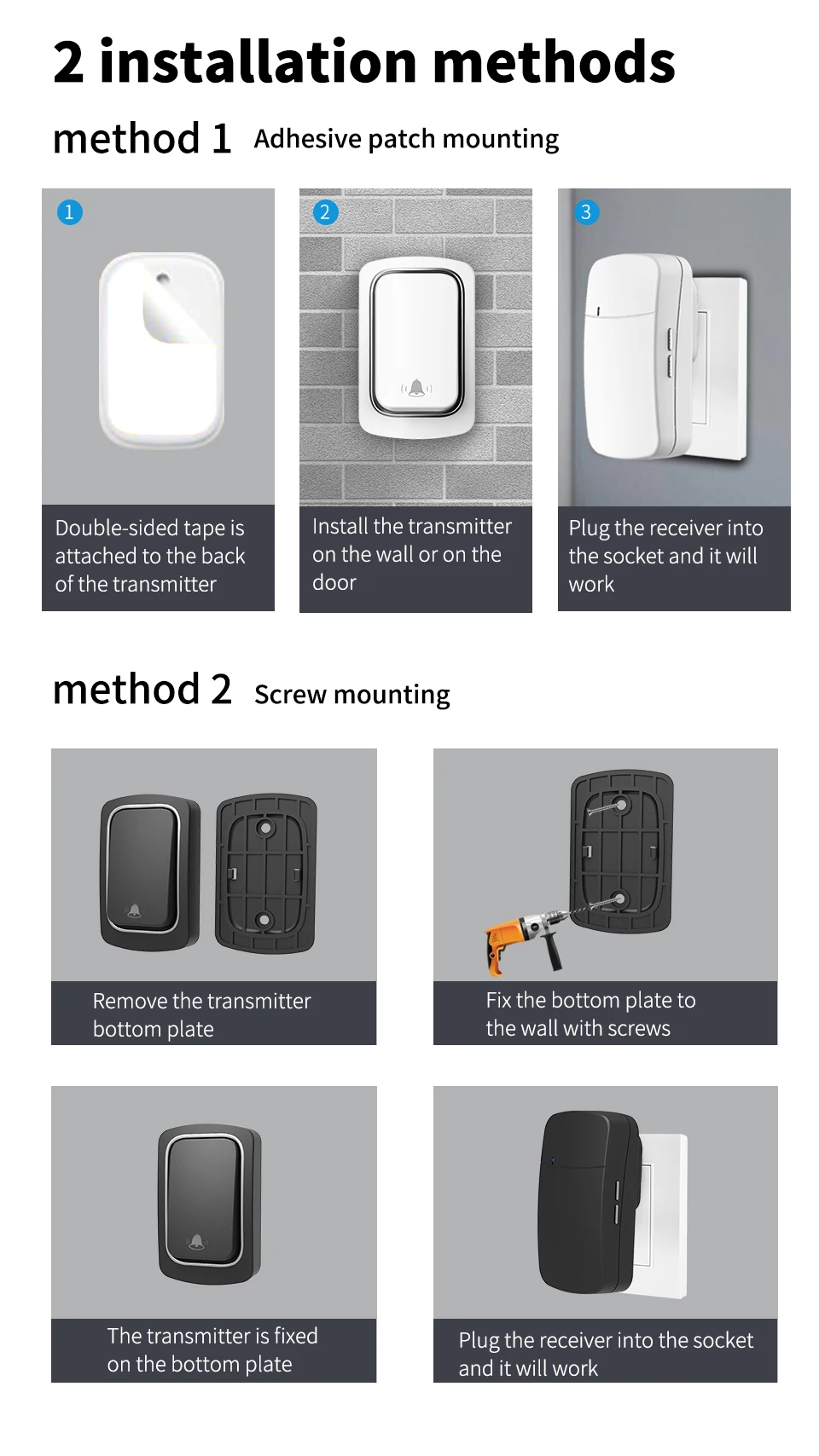 Never worry about batteries again with the SIXWGH wireless self-powered doorbell. This eco-friendly doorbell uses kinetic energy, so each press generates power to ring the chime instantly. Waterproof and durable, it’s perfect for both indoor and outdoor use. Easy to install and maintain, it provides a reliable alert system for your home, ensuring you never miss a visitor while adding a modern touch to your entrance.